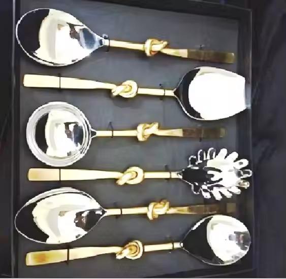 Poignée de feuille personnalisée poignée en acier inoxydable plaqué or ensemble de couverts en métal ensemble de couverts poignée en acier pour les fêtes ensemble de couverts