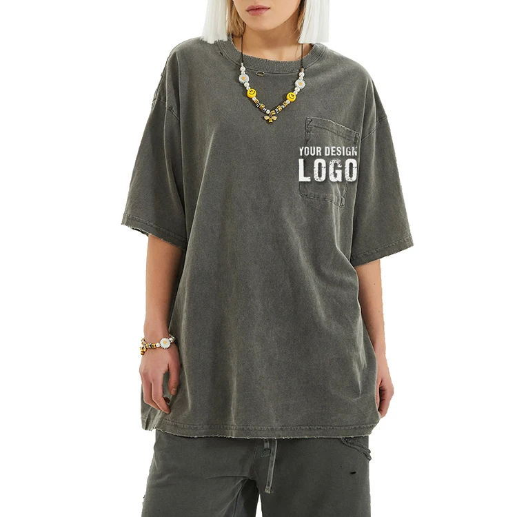 T-shirts pour hommes en coton 100% avec logo personnalisé, col ras du cou, effet batik, délavés, de haute qualité, coupe ample et respirante