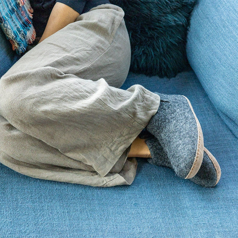 Pantoufles en feutre unisexes avec logo personnalisé, 100% laine de qualité, semelle en cuir, à enfiler