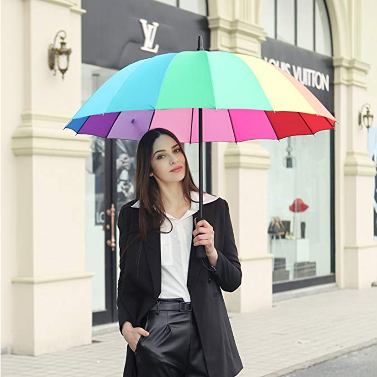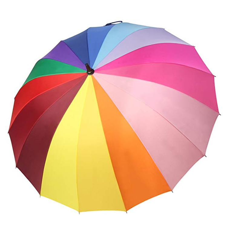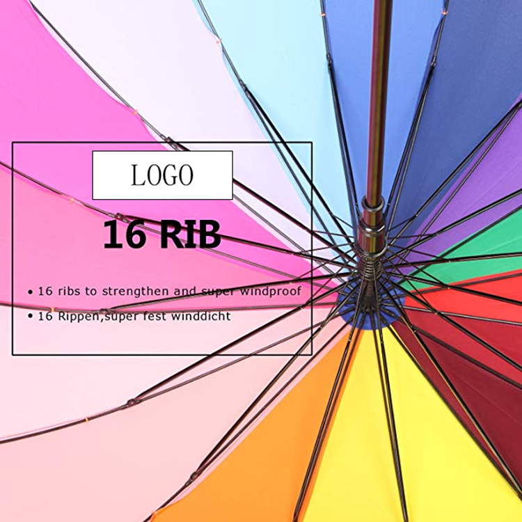 Logo personnalisé 16K Parapluie Iridescence Ouvert Semi-Automatique Parasol Coupe-Vent Parapluie Arc-en-ciel à Longue Poignée Droite