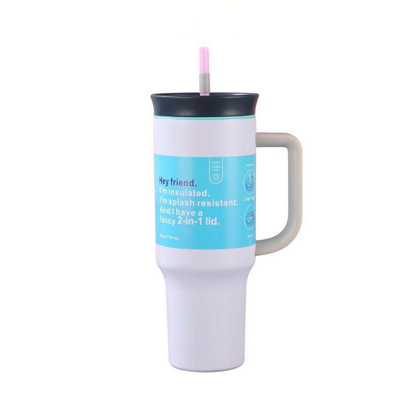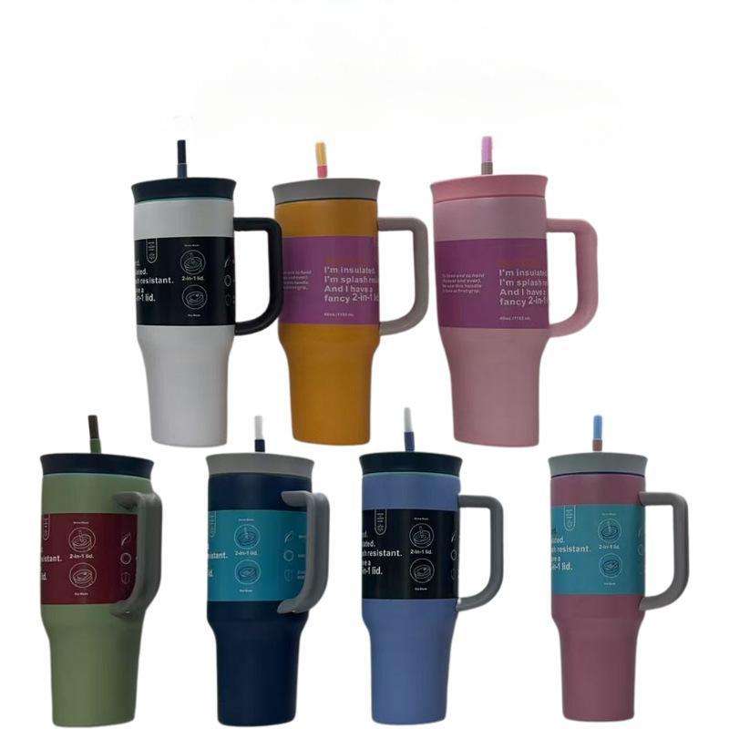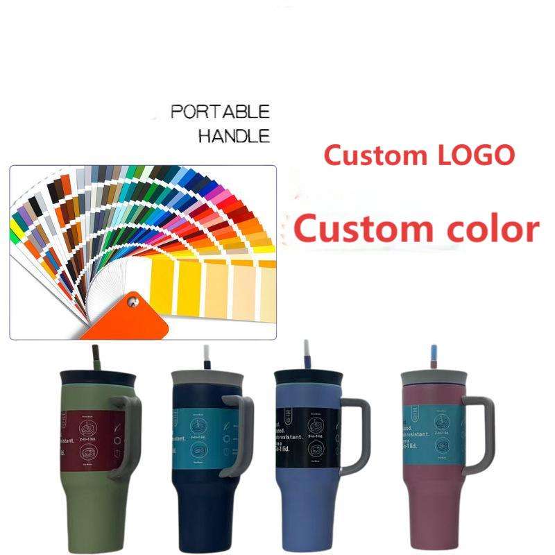 Mug de voyage isotherme en acier inoxydable à double paroi de 40 oz avec logo personnalisé, couvercle à poignée anti-fuite pour le café et l'utilisation en voiture