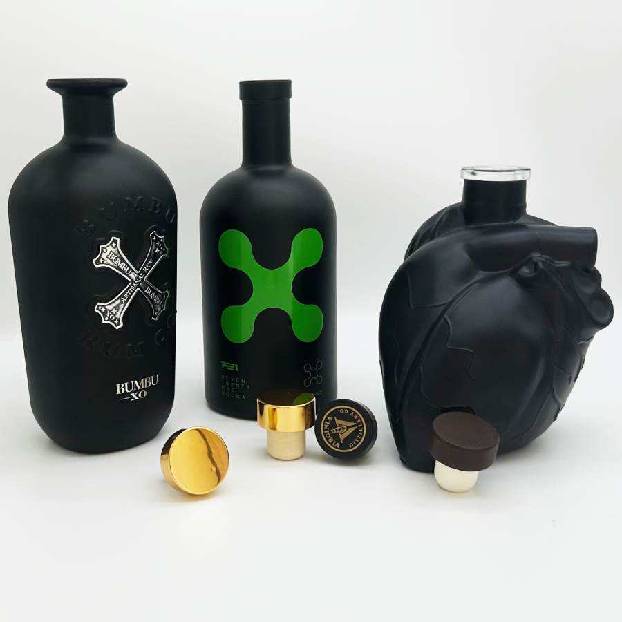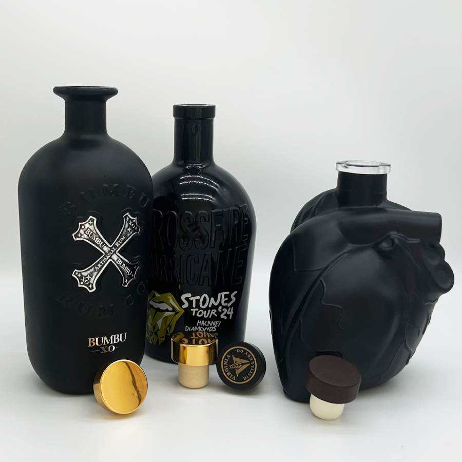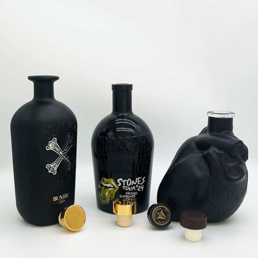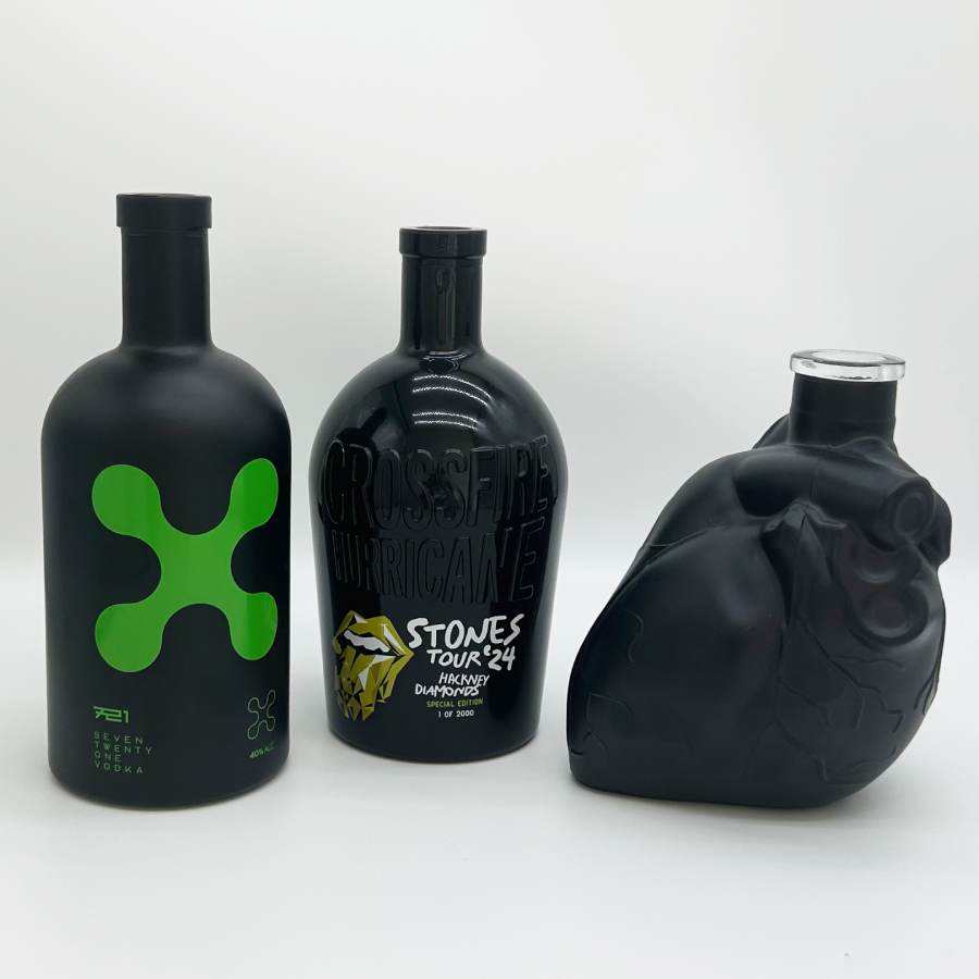 Carafe personnalisée avec logo, 700 ml, en verre noir mat en forme de cœur unique, pour spiritueux tels que le brandy, le cognac, le rhum, la tequila