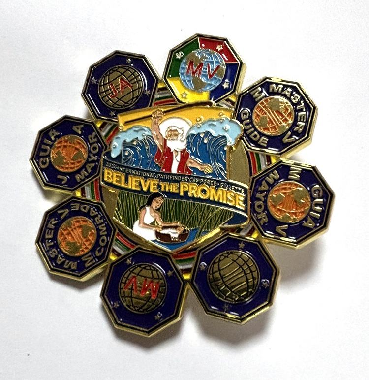 Épingles en émail personnalisées avec logo de l'église adventiste, badge en métal, club Pathfinder, camporee choisi, épingles rotatives