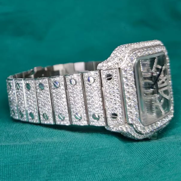 Montre pour homme en acier inoxydable avec logo personnalisé, style antique, luxe, strass, cristal, calendrier, quartz, unique, avec moissanite