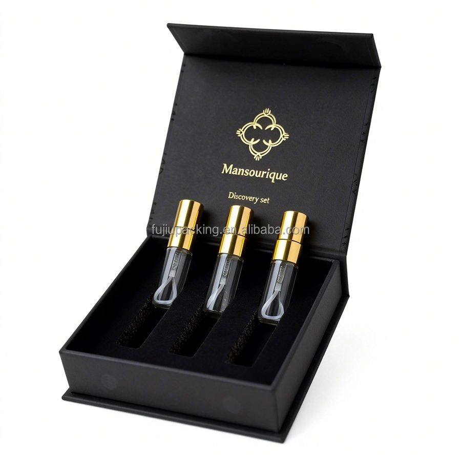 Boîte d'emballage en carton avec logo personnalisé, flacon de parfum vide, 2 ml, 3 ml, 5 ml, 10 ml, mini boîte d'échantillon de parfum, boîte de parfum, 3 pièces