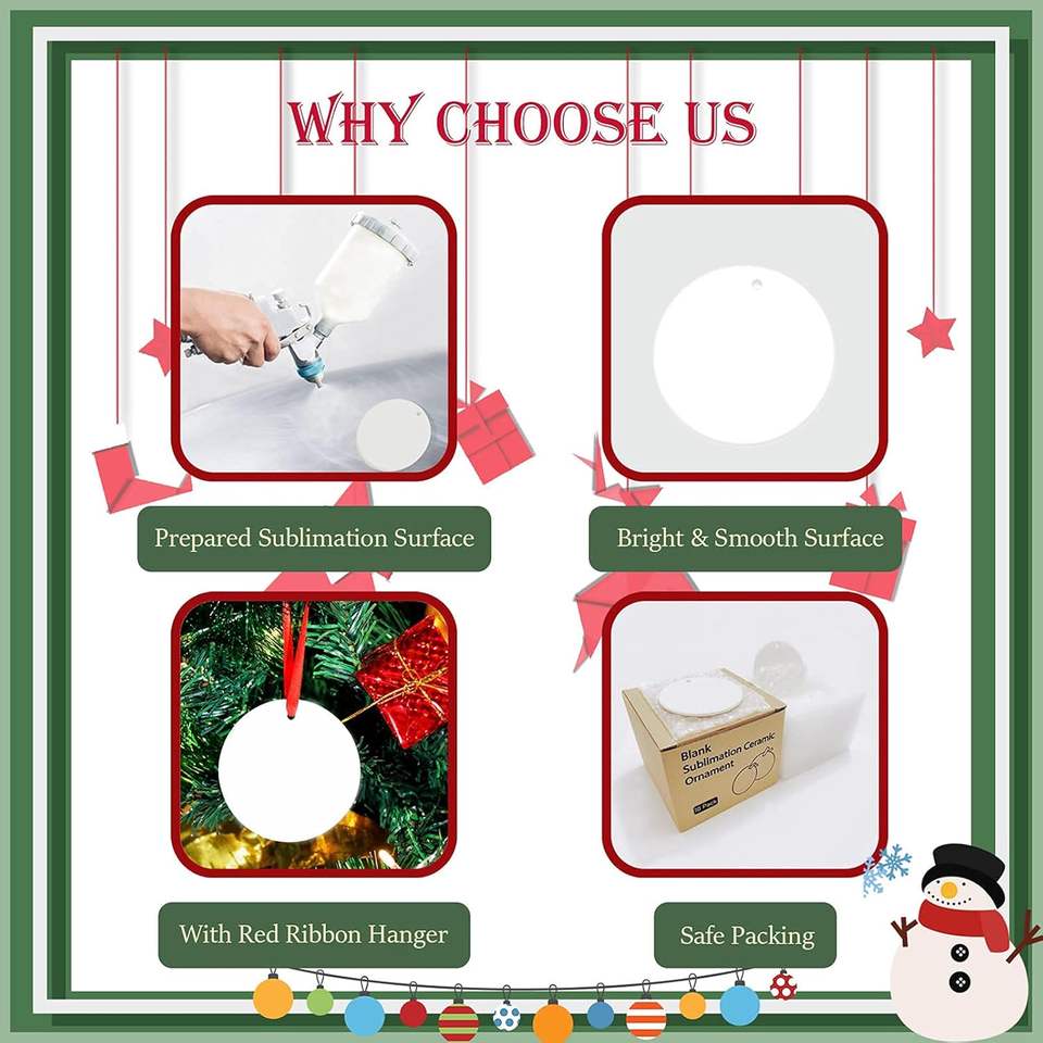 Arbre de Noël vierge en céramique avec logo personnalisé, breloque suspendue en cercle photo, imprimé aux UV, ornement de Noël rond pour sublimation