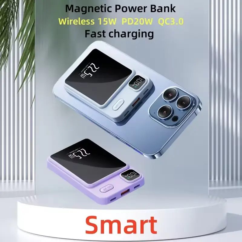 Logo personnalisé coloré 10000mAh magnétique Portable Power Bank charge rapide 5000mah chargeur sans fil batterie LI-polymère