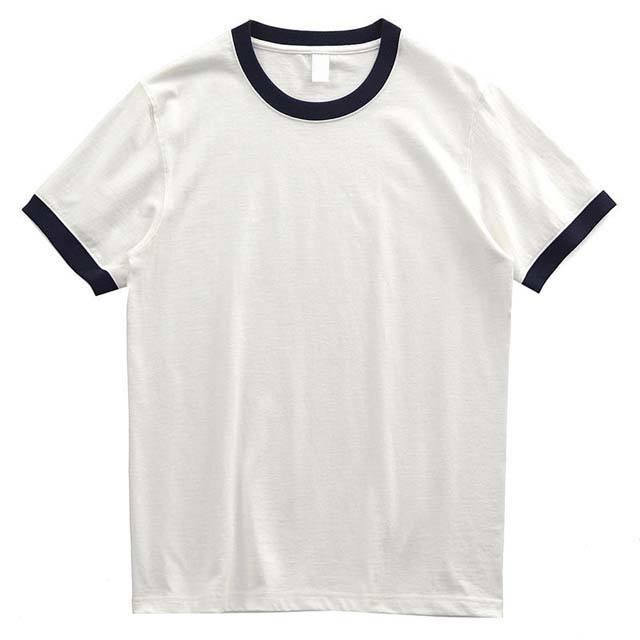 Logo personnalisé col rond sport t-shirt blanc sonnerie t-shirt à manches courtes coton contraste col hommes sonnerie t-shirts été