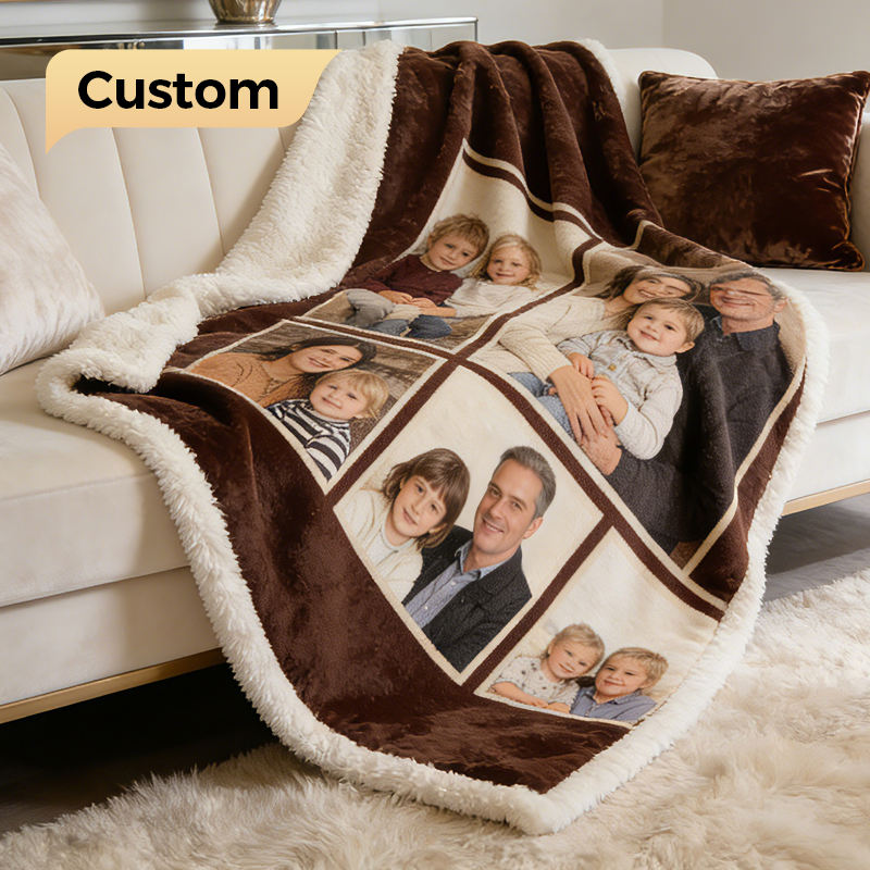 Couverture en microfibre style sherpa à séchage rapide, douce et luxueuse, avec motif personnalisé, impression double face