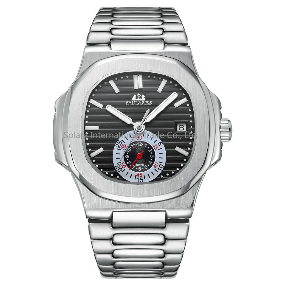 Montre pour homme en acier inoxydable entièrement automatique mécanique avec logo personnalisé, étanche, calendrier