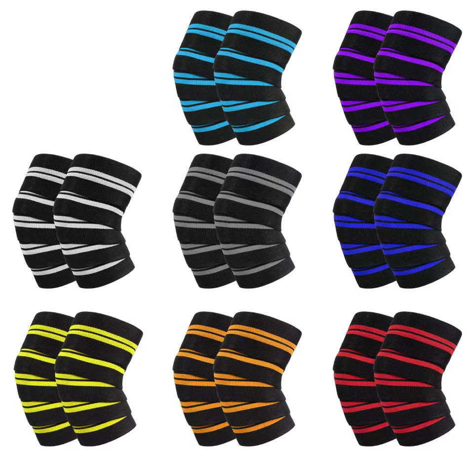 Bandes de genou en coton élastique unisexe écologiques avec logo personnalisé, pour la musculation, la musculation, respirantes, durables, pour l'entraînement en salle de sport, sécurité