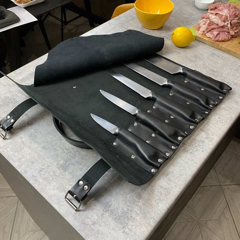 Sac de transport pour couteaux de chef professionnel en cuir de vache véritable, léger et portable, avec logo personnalisé LKR-0229
