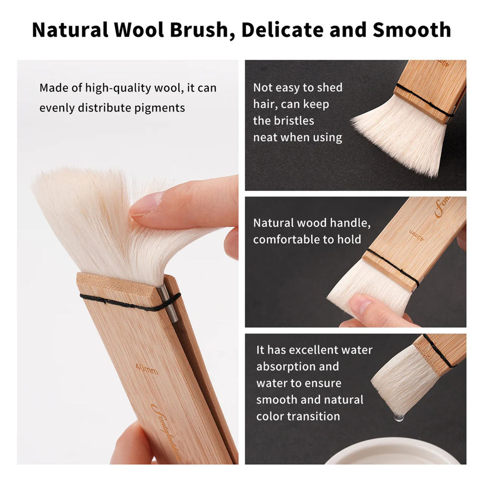 Pinceau plat en poils de chèvre avec manche en bambou, logo personnalisé, pour aquarelle, fournitures artistiques pour les lavages et la peinture d'arrière-plans
