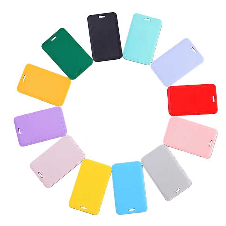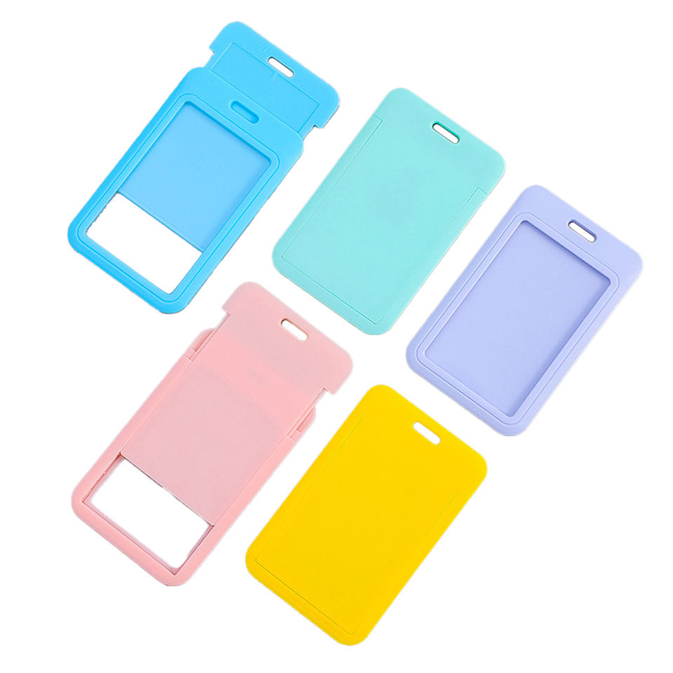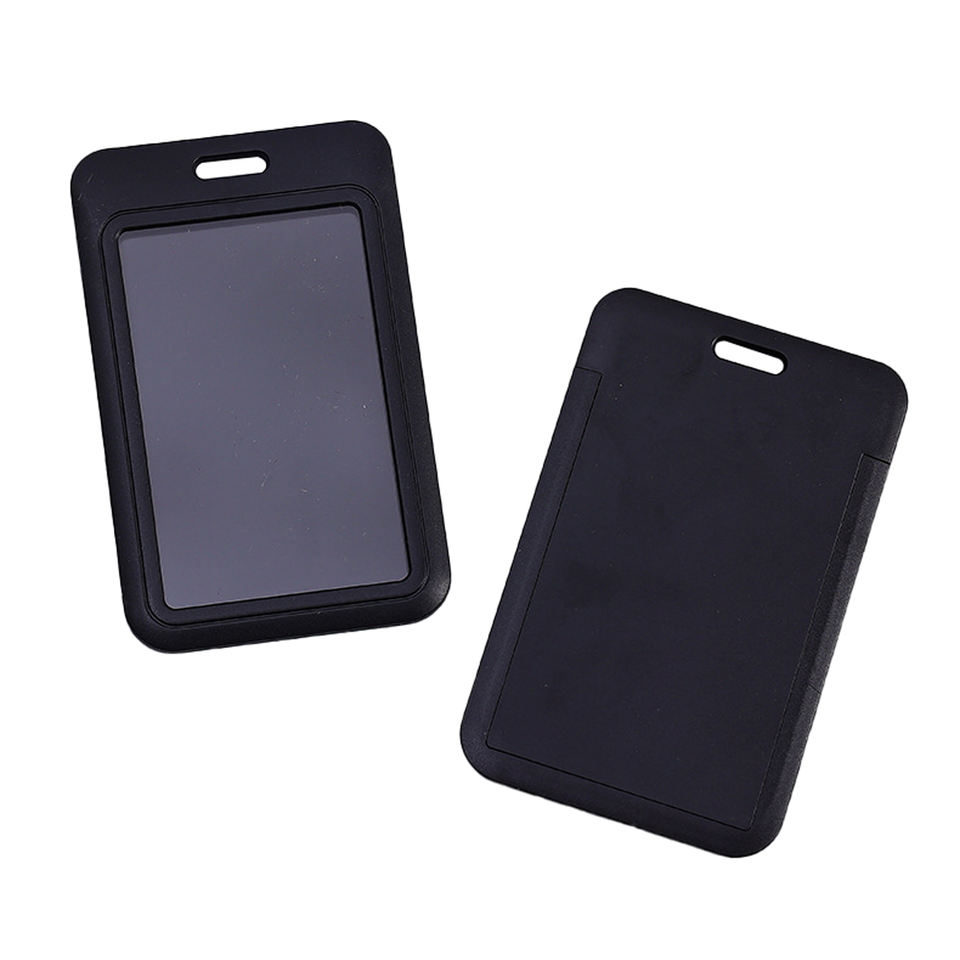 Porte-badge vertical en plastique dur avec logo personnalisé porte-carte d'identité protecteur de badge à ouverture coulissante pour lanière