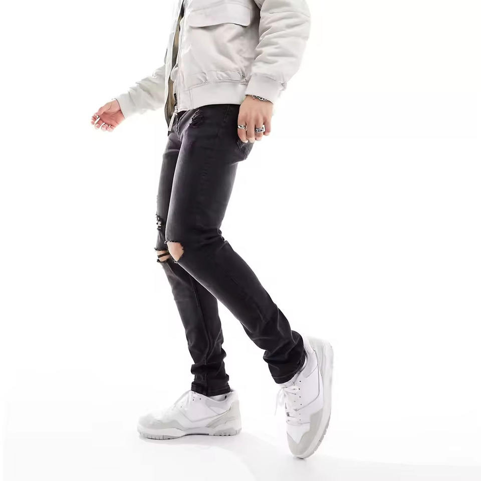 Jeans décontractés pour hommes respirants de haute qualité Logo personnalisé nouveau pantalon en jean adulte à la mode taille moyenne déchiré Patchwork Design