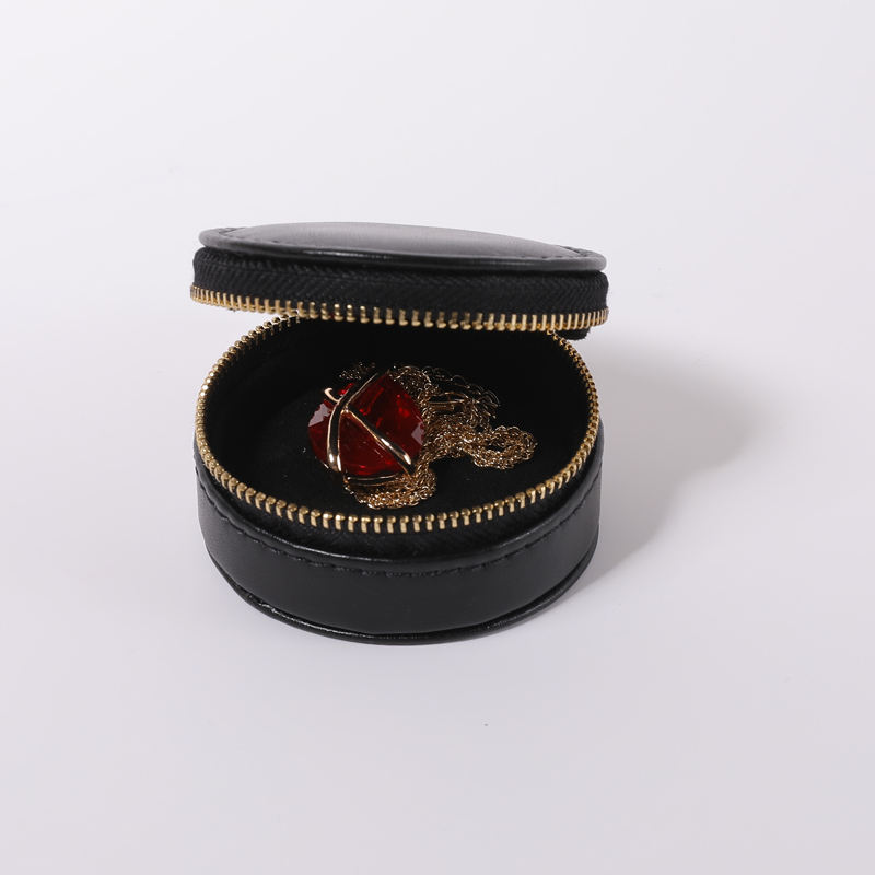 Boîte à bijoux ronde de voyage en cuir PU de haute qualité avec fermeture éclair, personnalisable avec logo, pour boucles d'oreilles et colliers – Meilleure vente