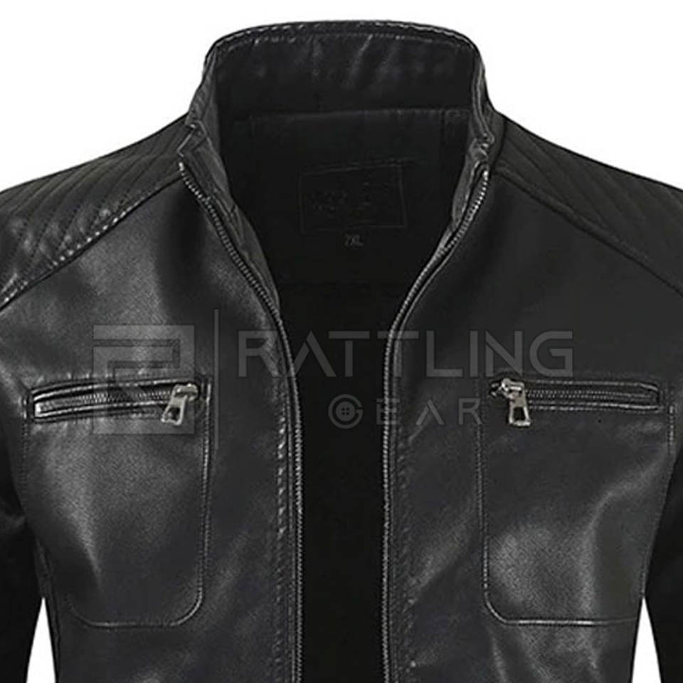 Logo personnalisé Veste en cuir pour hommes de haute qualité avec col montant Vêtements de mode de style de rue