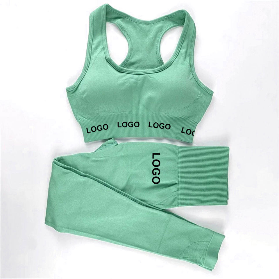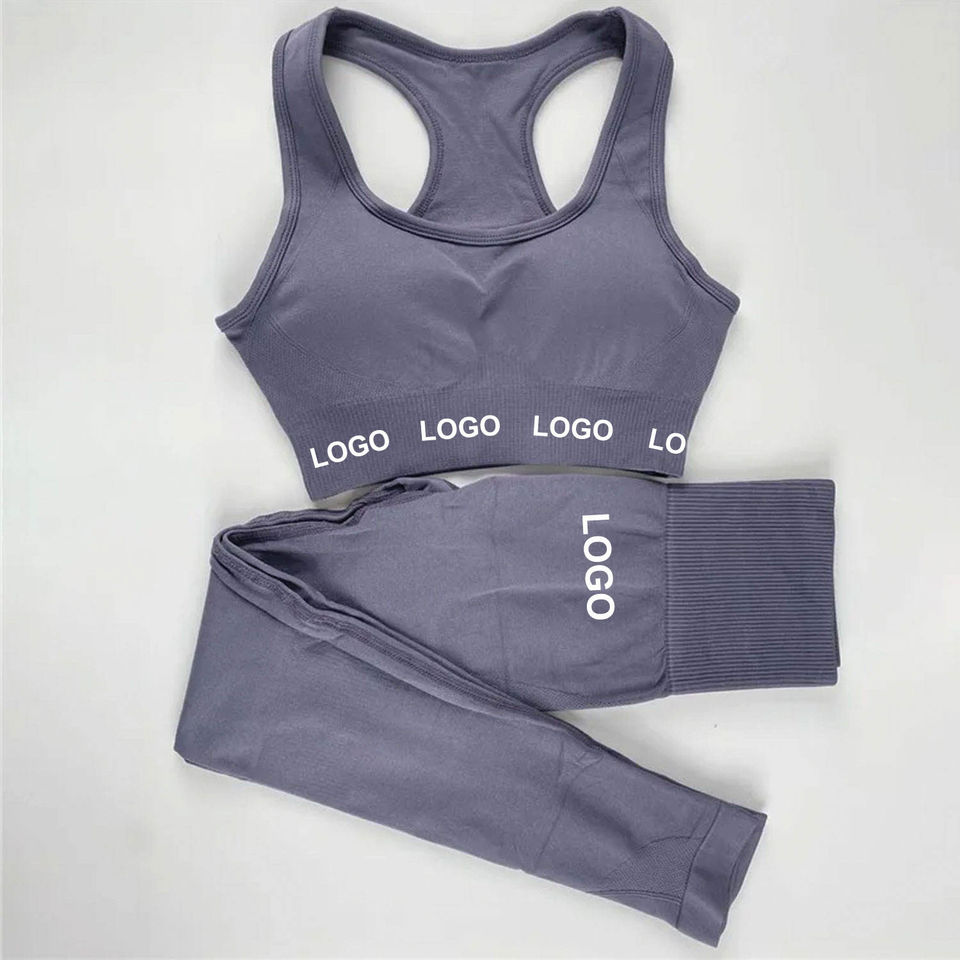 Vêtements de sport à la mode de couleur unie avec logo personnalisé Vêtements de yoga et de gymnastique Ensemble de yoga et fitness 2 pièces pour femmes
