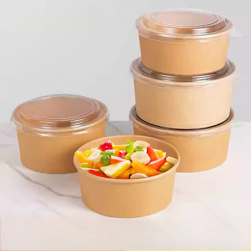 Bol en papier kraft avec logo personnalisé pour la restauration rapide à emporter, bol en papier jetable