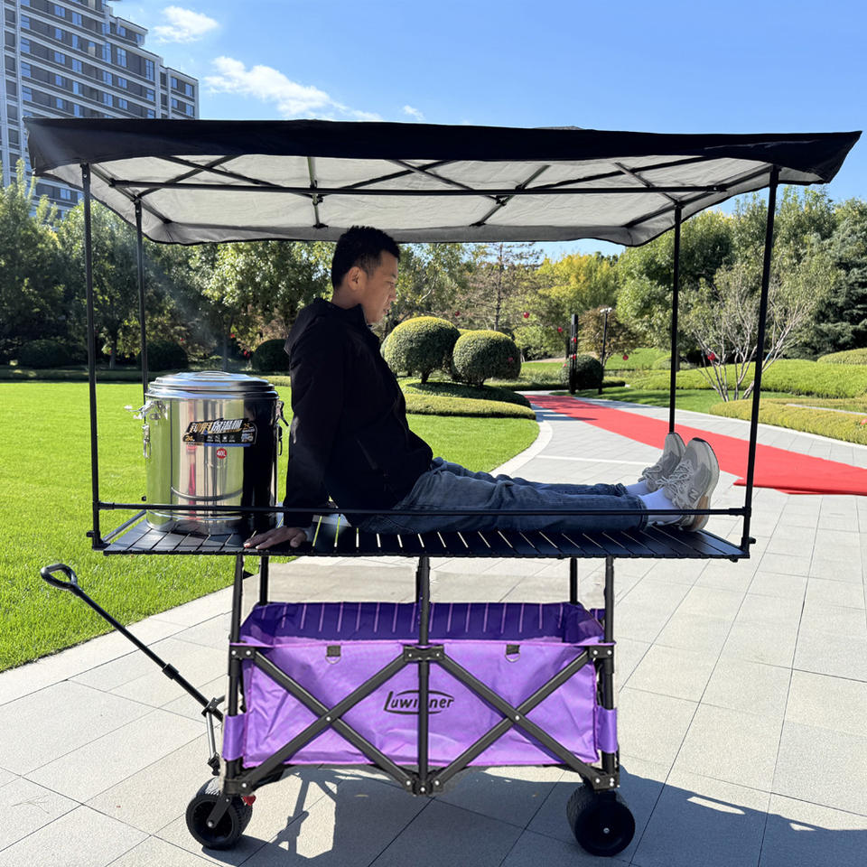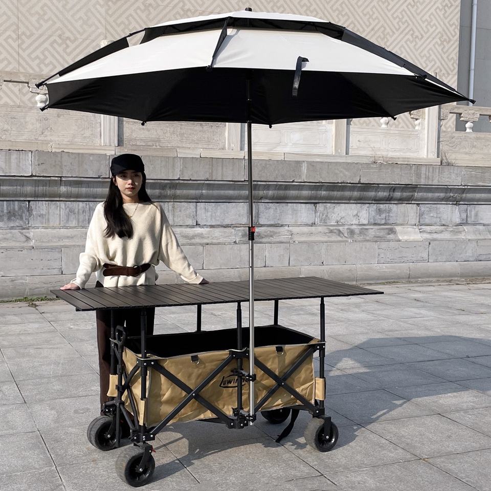 Chariot de marché pliable en métal de grande taille avec logo personnalisé, table 167*60, auvent imperméable, chariot de camping, chariot de jardin, chariot de randonnée