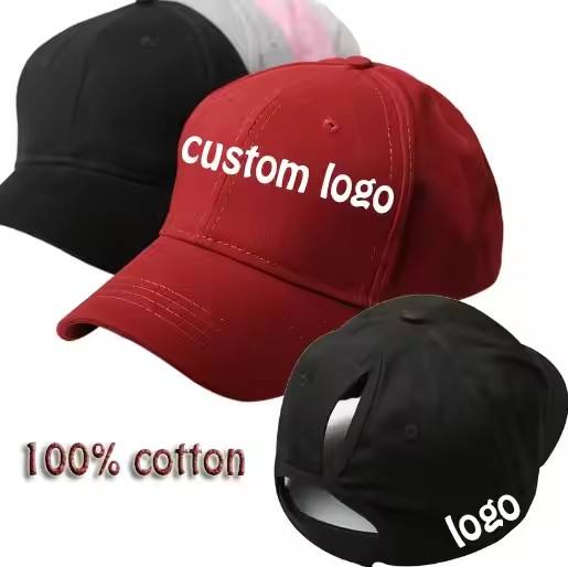 Casquette de baseball 6 panneaux en coton 100% personnalisable avec logo, respirante, imperméable, haute performance, pour le cyclisme, imprimée, avec ouverture pour queue de cheval