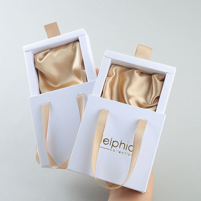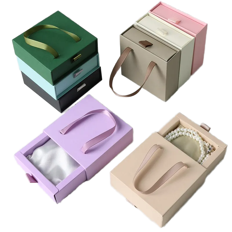 Customized Logo Luxury Ribbon Cardboard Ring Bracelet Storage Drawer Jewelry Box Sliding Handle Design Packaging Jewelry Box