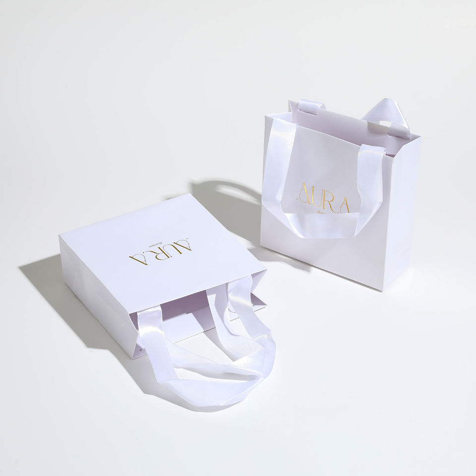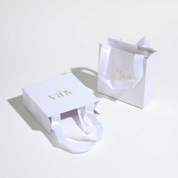 Sac de luxe moderne et portable en carton avec logo personnalisé, ruban et cordon, pour emballage de bijoux et cadeaux de fêtes