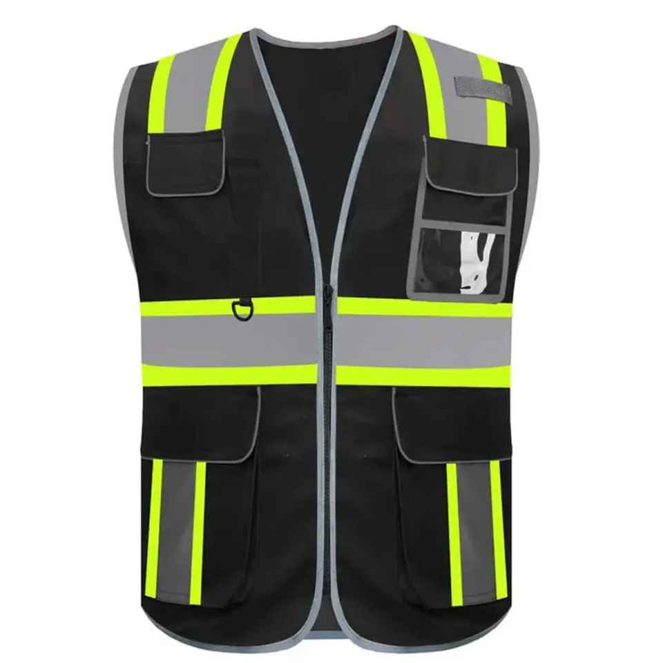 Logo personnalisé multi-poches hommes gilet réfléchissant sécurité noir gilet de sécurité route travail haute visibilité gilet