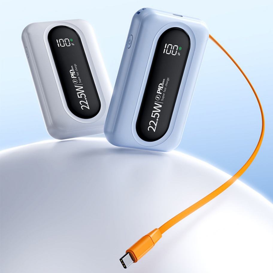Batterie externe haute capacité 20000mAh 10000mAh avec câbles intégrés, logo personnalisé, charge rapide PD22.5W, pour l'extérieur