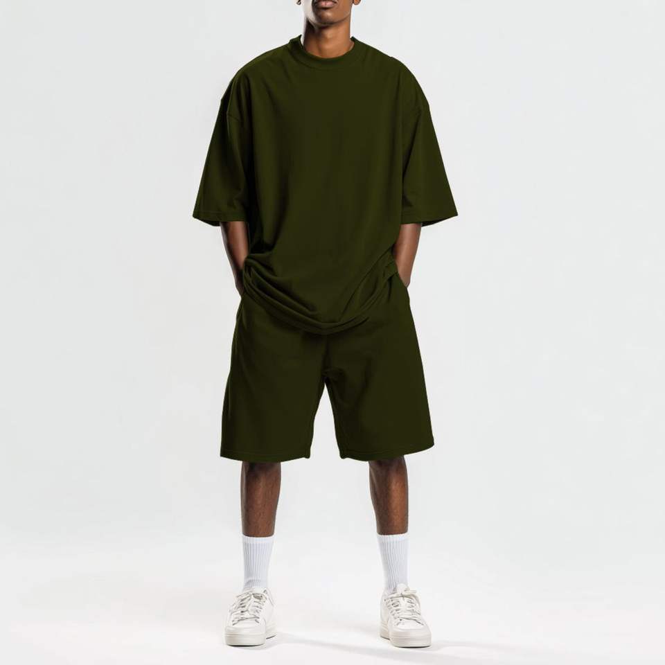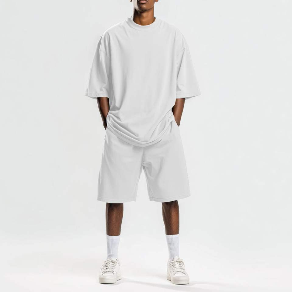 Ensemble t-shirt et short grande taille avec logo personnalisé, impression sérigraphique, 100% coton, vêtements oversize vintage pour hommes