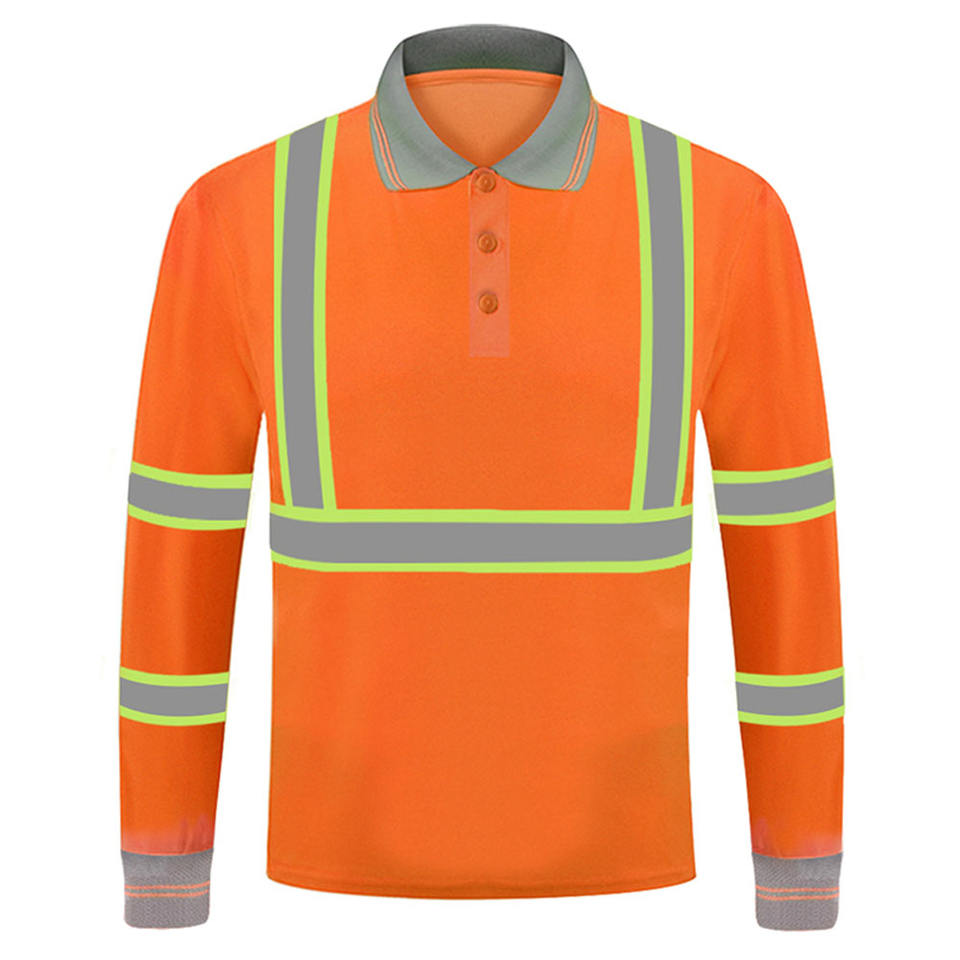 Chemises polo personnalisées avec logo, 100% polyester, séchage rapide, manches longues, réfléchissantes, haute visibilité, pour hommes, pour la construction
