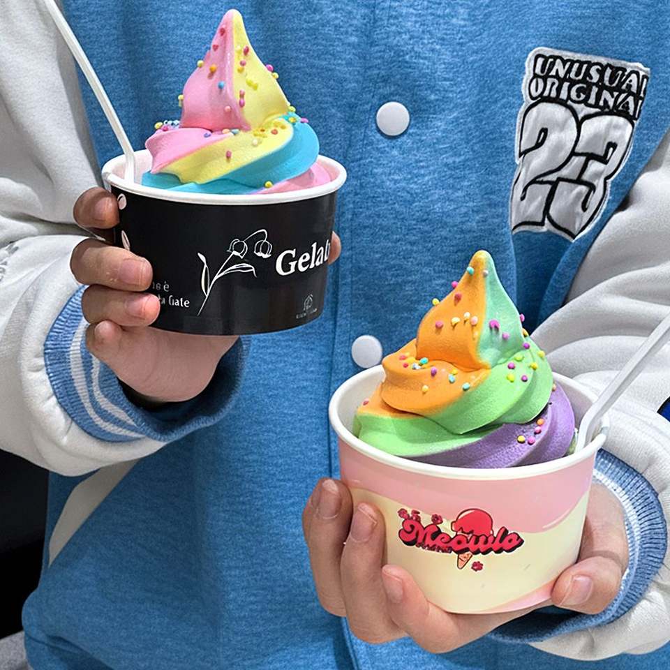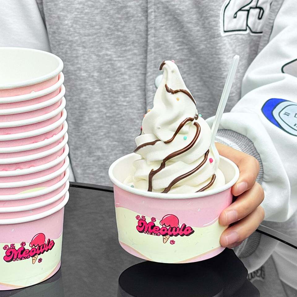 Gobelets en papier pour yaourt jetables avec impression de logo personnalisée, gobelets en papier pour crème glacée avec couvercles, 3 oz à 32 oz, biodégradables, pour desserts glacés