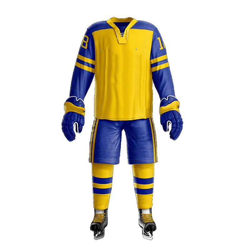 Customized Logo Print Hand Made Team Wear Ice Hockey Uniform Sets New Design Jersey and Pant 100% Polyester