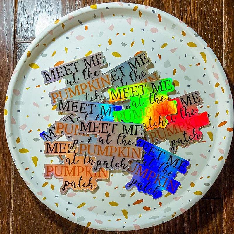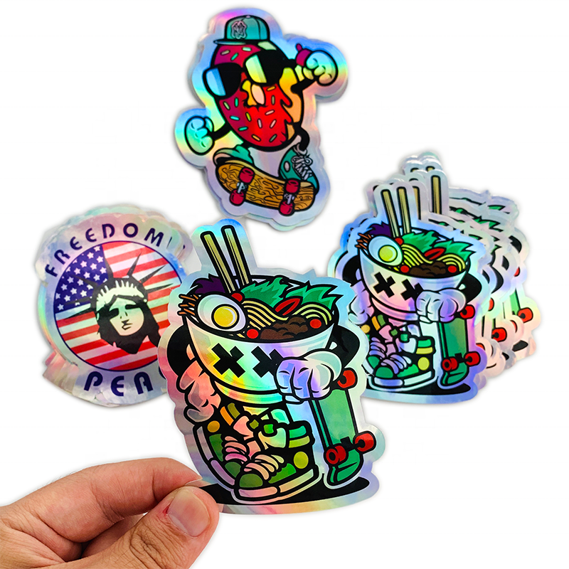 Autocollants découpés sur mesure avec impression de logo, film vinyle adhésif imperméable, film laser holographique
