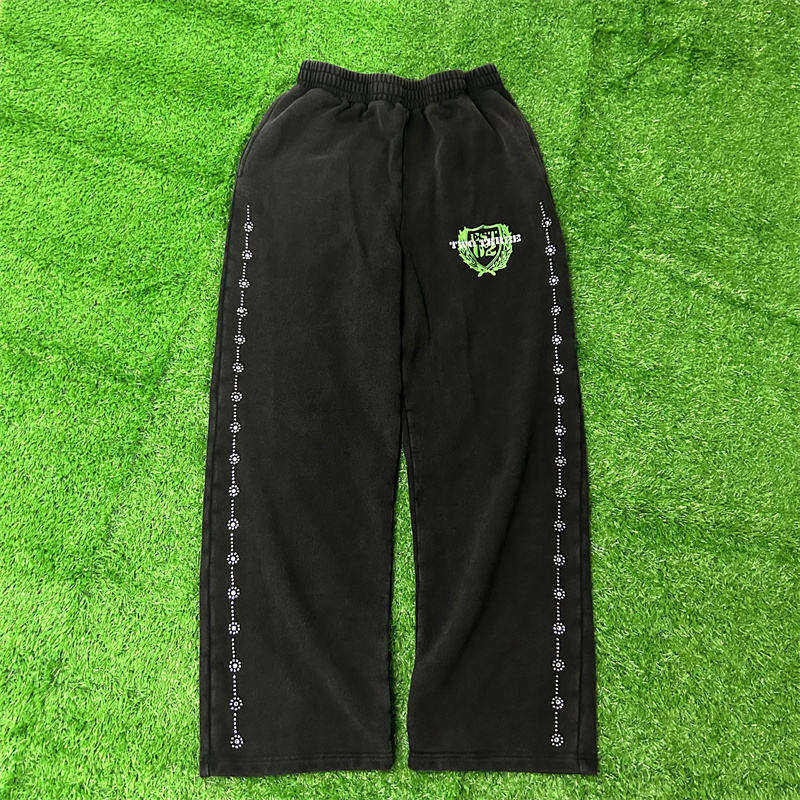 Impression de logo personnalisée, tissu doux et respirant, pantalon de survêtement streetwear, strass, coupe ample, pantalon de jogging pour homme, OEM/ODM