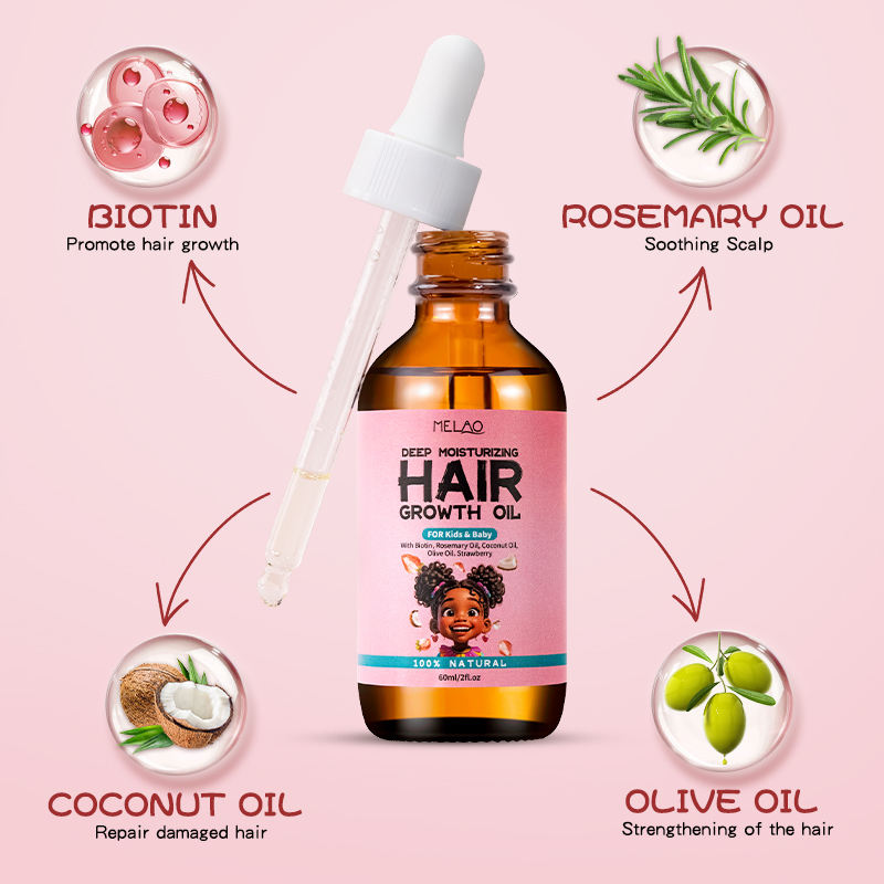 Huile capillaire hydratante bio et naturelle pour bébé, favorise la pousse, marque privée avec logo personnalisé