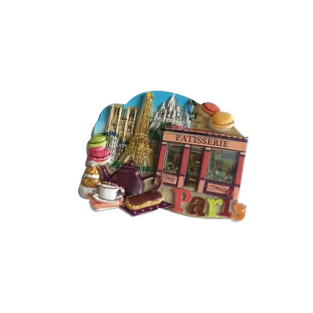 Aimant de réfrigérateur en résine personnalisé avec logo, peint à la main, thème Paris, nourriture, cadeau de voyage, souvenir, forme autocollante pour collection