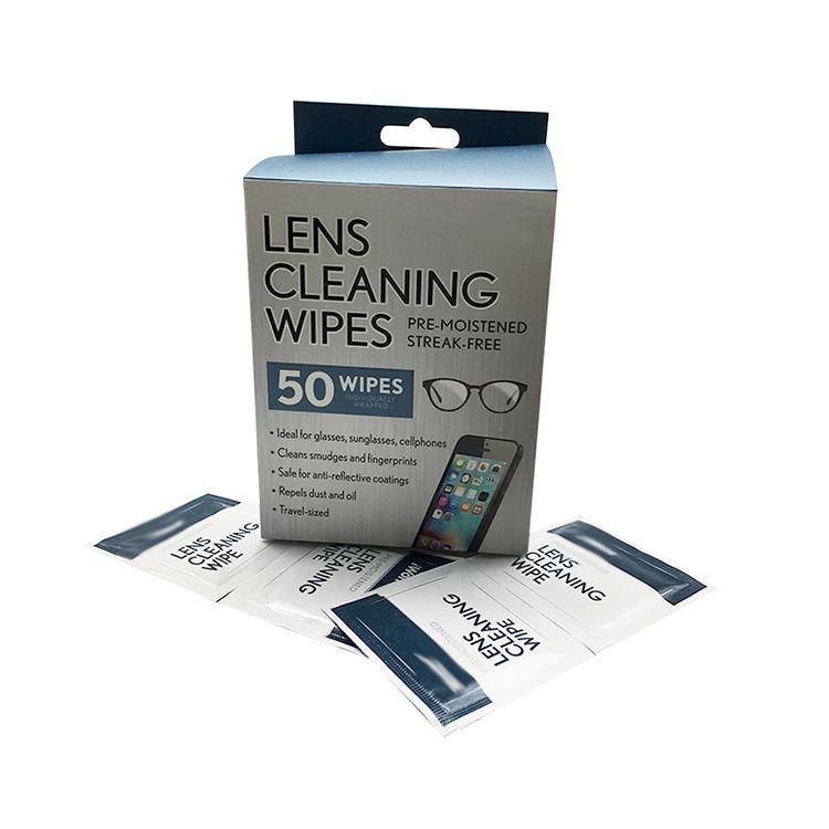 Logo personnalisé/taille dépoussiérage et emballage indépendant anti-buée lingettes de nettoyage portables pré-humidifiées pour lentilles