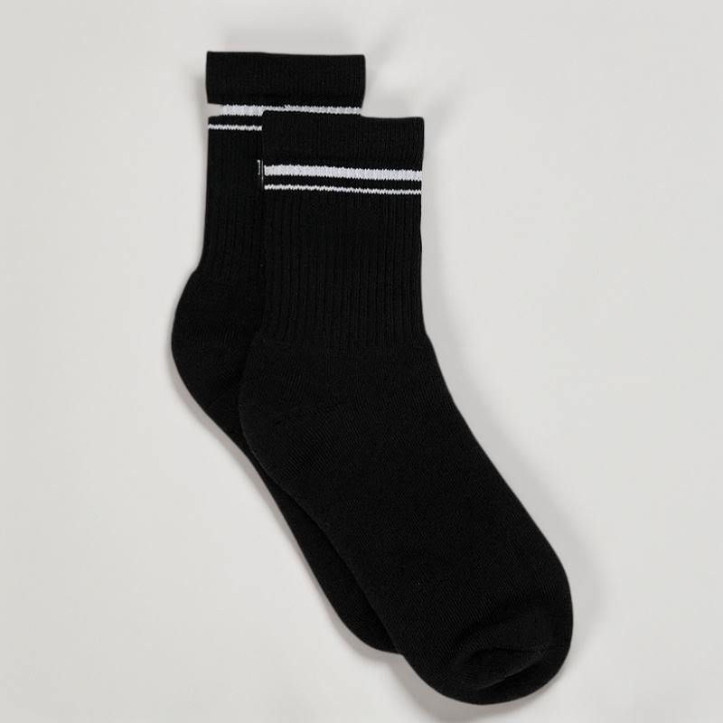 Customized Logo Solid Black White Cotton Socks Embroidery Letter Men Women Unisex Sport Socks