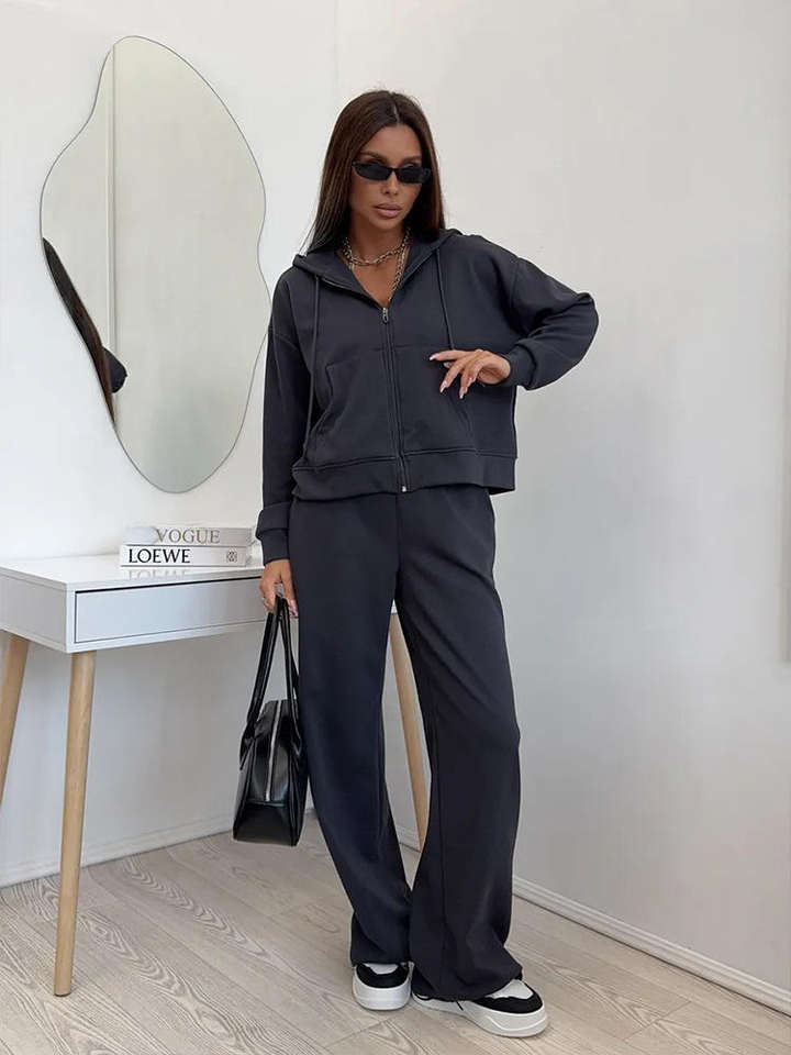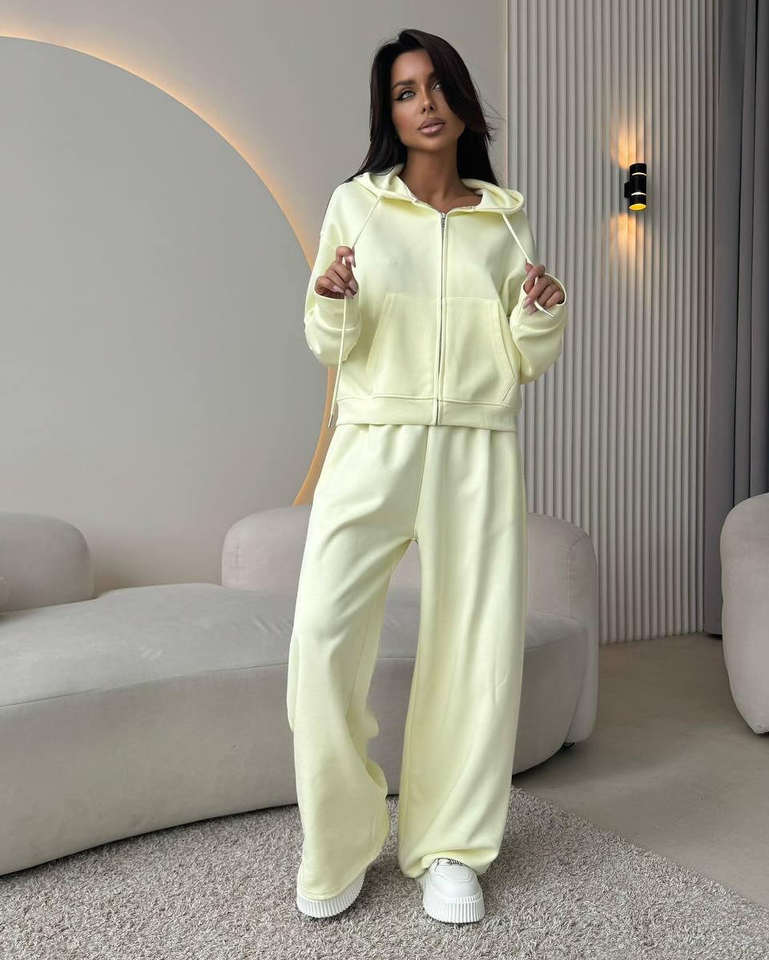 Ensemble de survêtement unisexe personnalisé avec logo, style vintage décontracté, sweat à capuche zippé à manches longues et pantalon de jogging à cordon de serrage