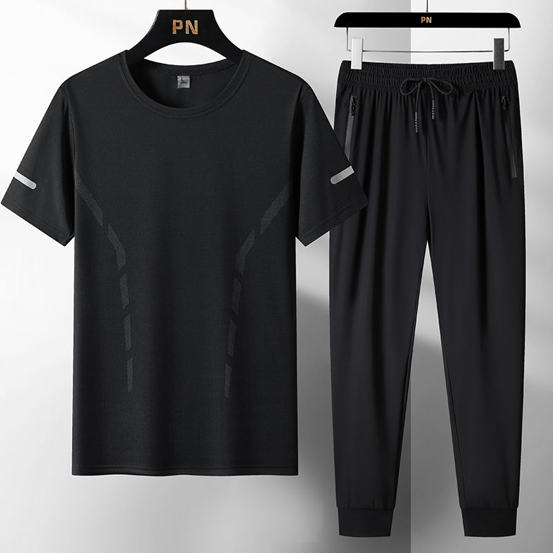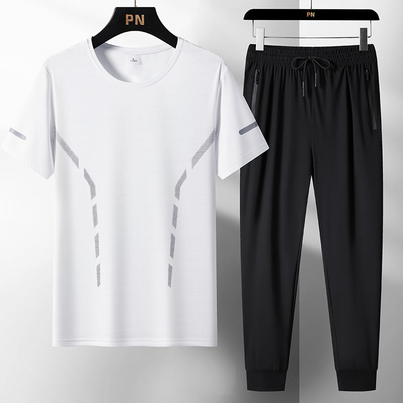 Ensemble de t-shirts à manches courtes pour hommes, personnalisés avec logo, ultra-fins, pour le sport et les loisirs, été, deux pièces avec shorts et pantalons