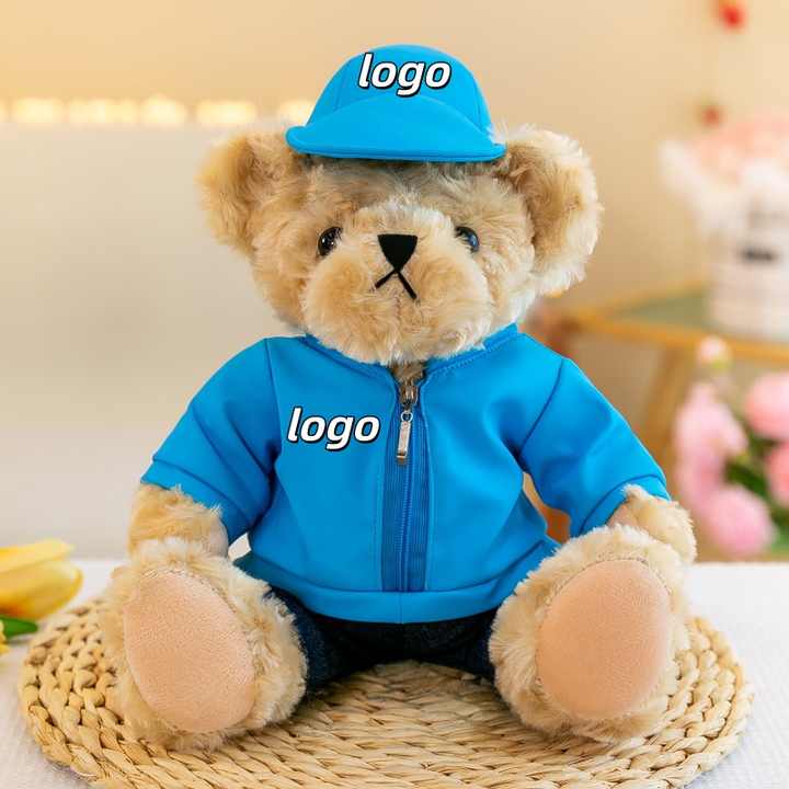 Ours en peluche personnalisé avec logo, en tissu de coton lavé, tailles 25cm/30cm, anti-stress, cadeau d'entreprise