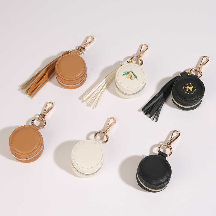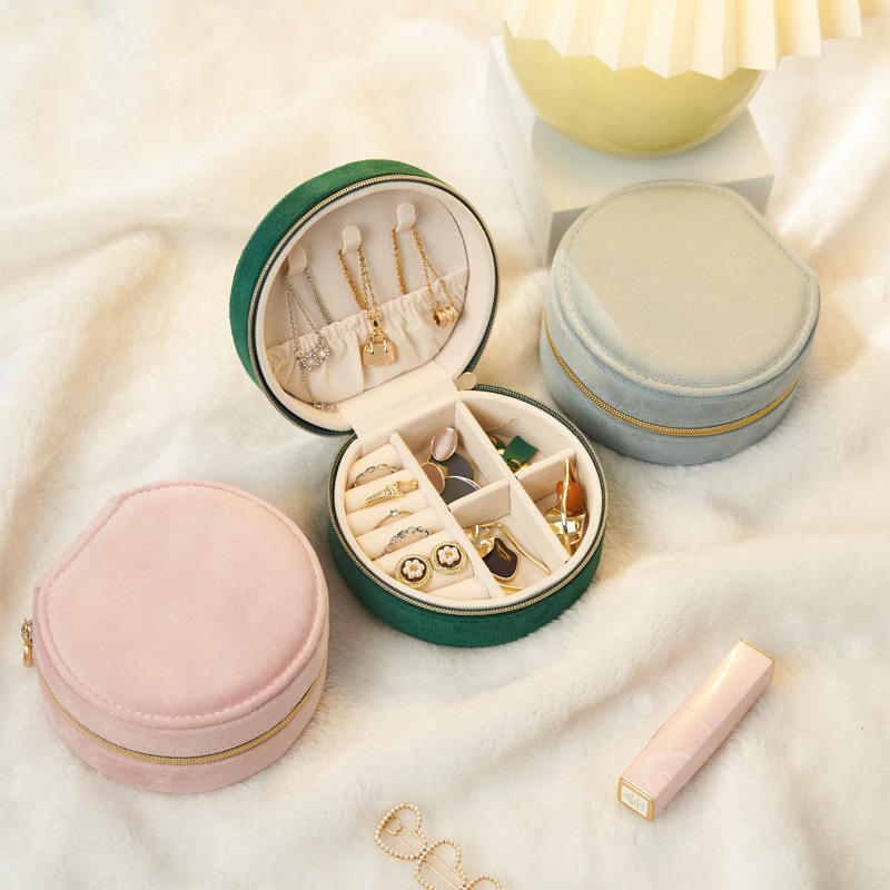 Boîte à bijoux ronde en cuir PU avec fermeture éclair, logo personnalisé, pour bagues et boucles d'oreilles, avec pompon, sac de rangement pour colliers, emballage pour bijoux
