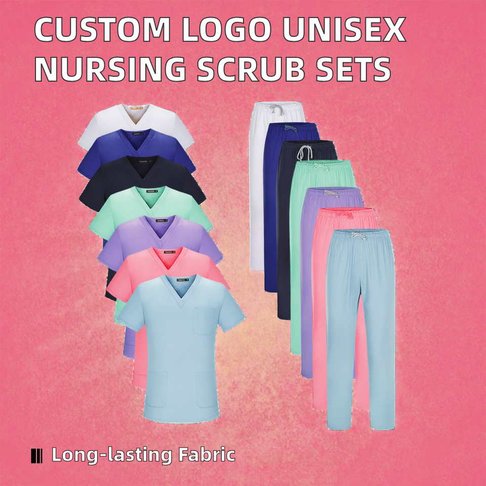 Ensembles d'uniformes d'infirmière unisexes personnalisables avec logo, en tissu tissé, pantalons de jogging et blouses médicales pour femmes et hommes, type d'accessoire