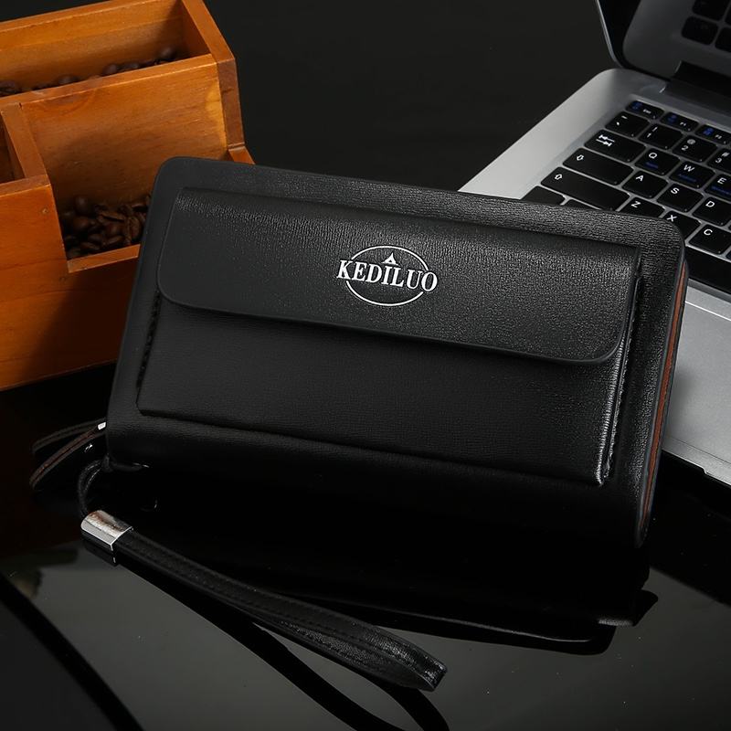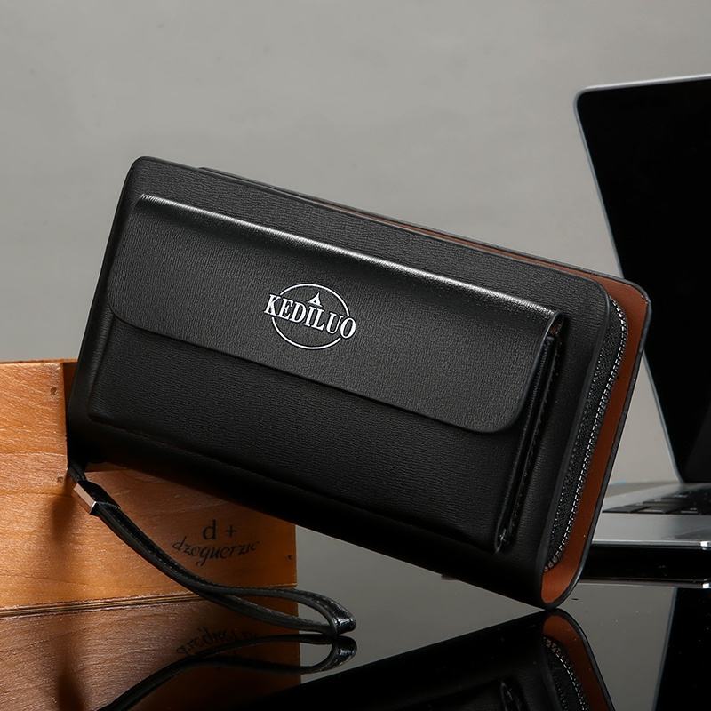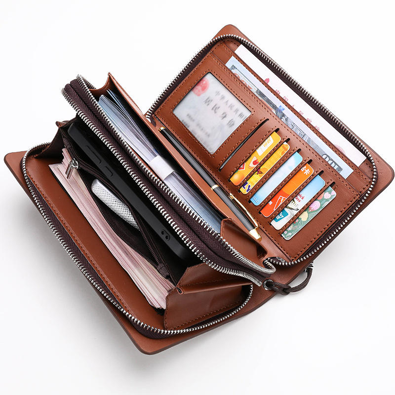 Sac à main long en cuir PU imperméable, style vintage géométrique, avec logo personnalisé, simple, pour homme, avec fermeture éclair, multi-couches, portable, pour affaires