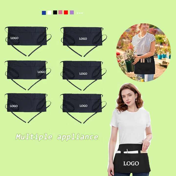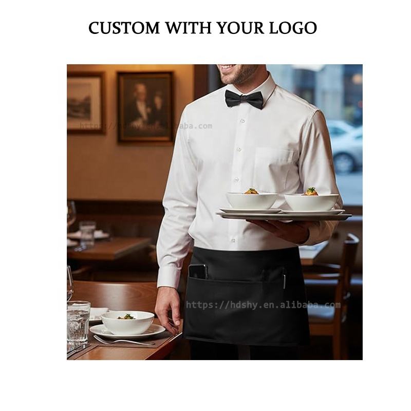 Tabliers de taille personnalisables avec logo, vente en gros, pour serveurs, serveuses, salons de coiffure, salons de beauté, cuisines domestiques, boulangeries, cafés, modèles courts avec poches