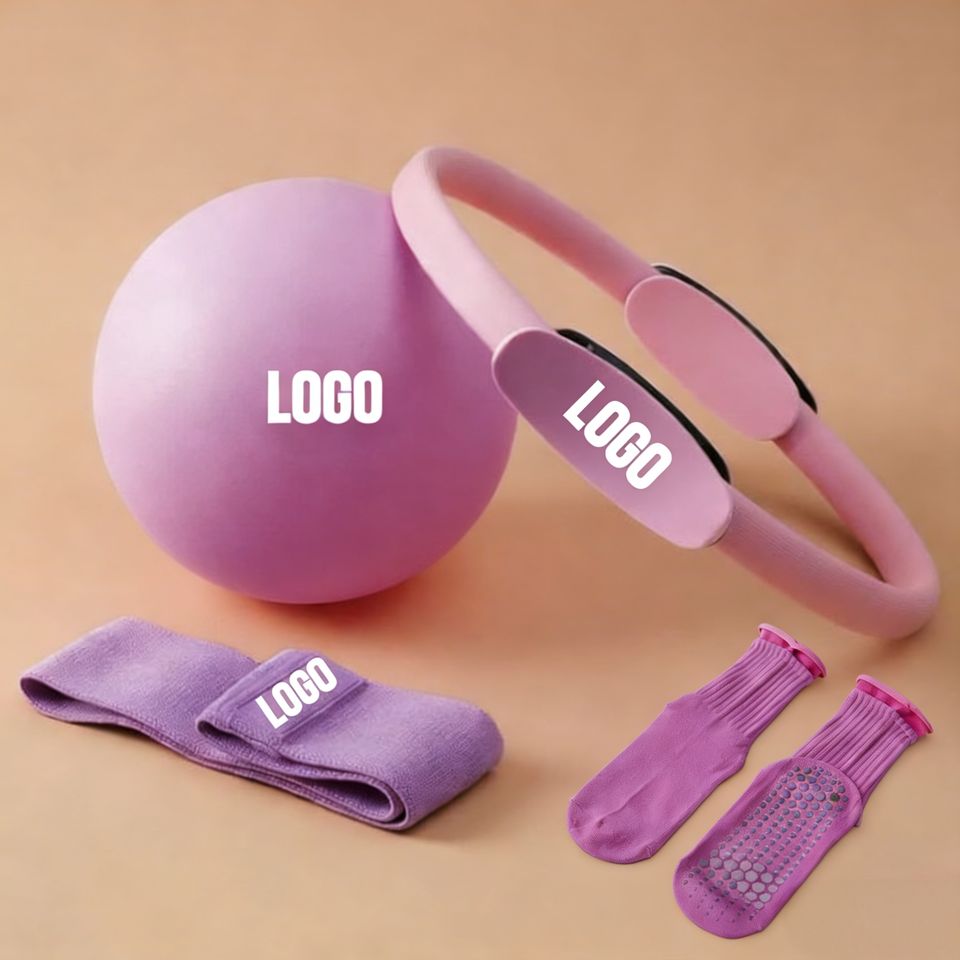 Kit Essentiel de Pilates pour Femmes avec Logo Personnalisé : Anneau de Pilates, Ballon de Pilates, Bandes de Résistance, Cercle Magique et Accessoires Premium