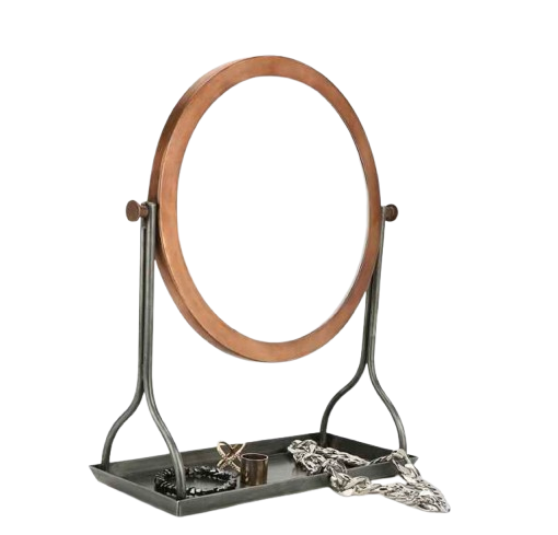 Petit miroir de bureau de maquillage fait à la main avec métal rotatif et verre pour mariage, anniversaire ou cadeaux d'occasion.