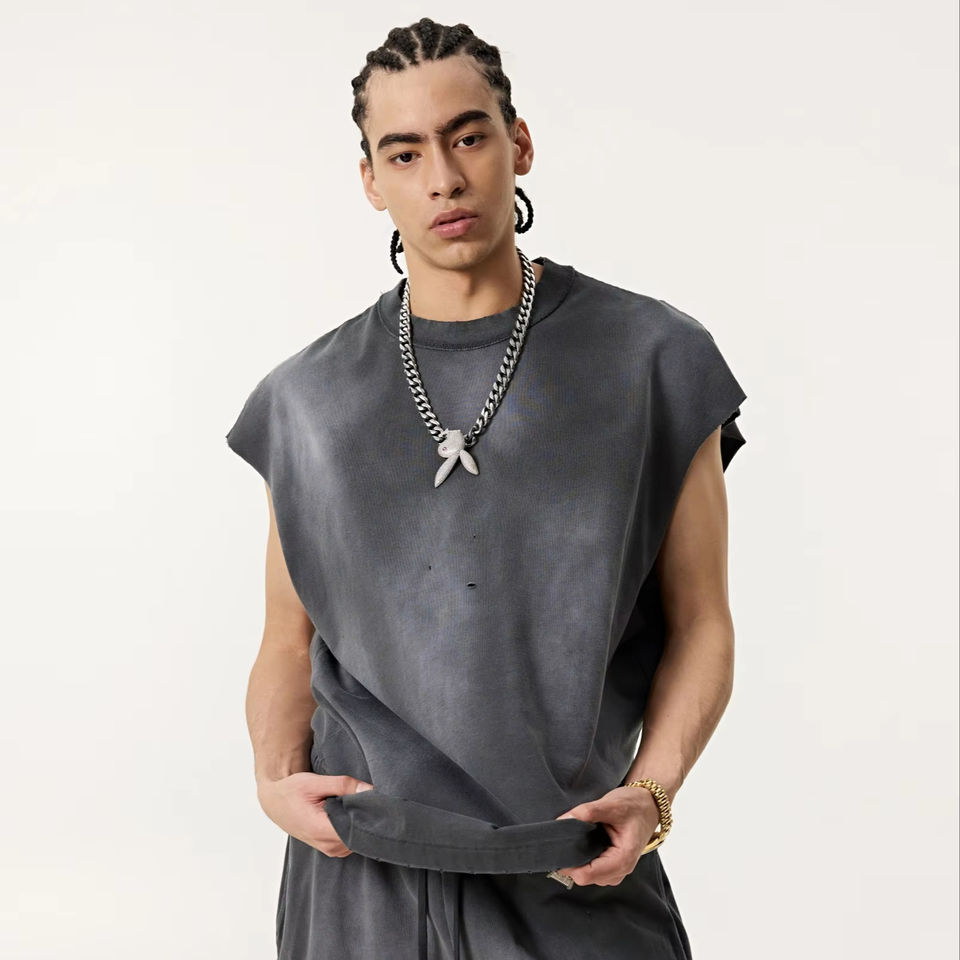 Débardeur en tricot personnalisé, coupe ample, en coton, col rond, anti-plis, respirant, style vintage américain, hip-hop