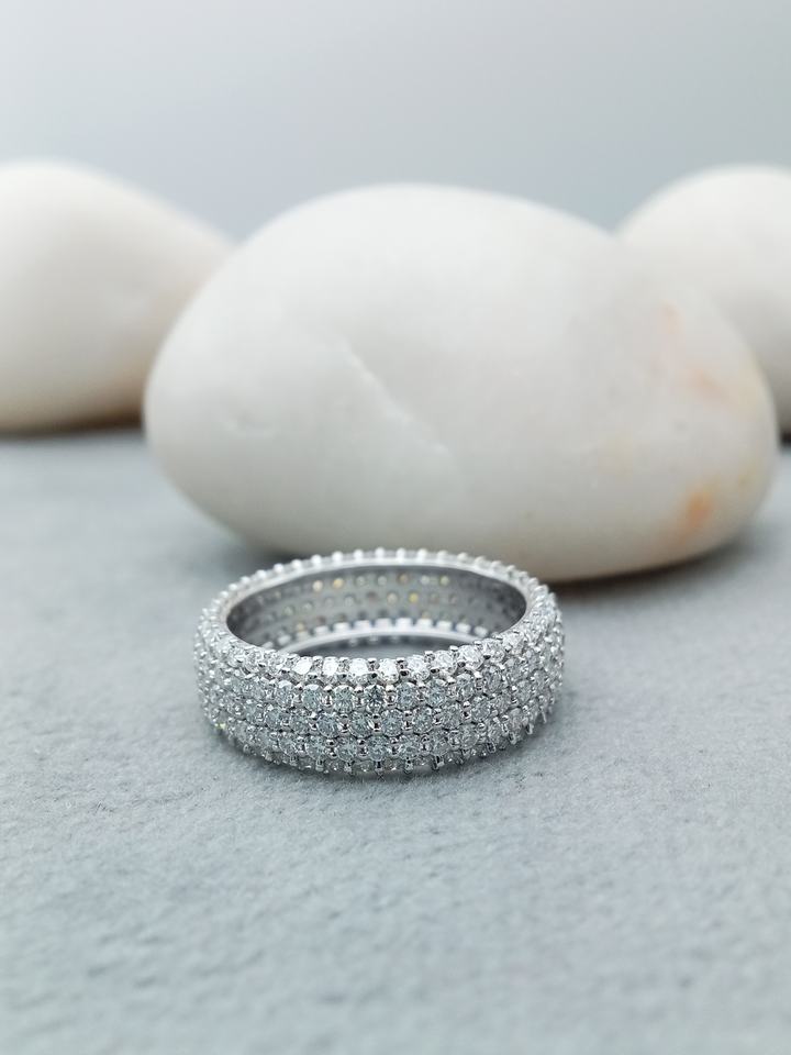 Bague de luxe personnalisée en argent 925/10K 14K 18K or blanc Moissanite avec sertissage de pavé de mariage